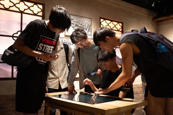 同学们走进武乡八路军文化数字体验馆,在科技光影中追寻红色记忆。踏入馆内,我们能够在“太行数字长卷”展板前穿越时空与八路军战士互动对话,感受他们的战斗与生活,老照片被AI技术赋予鲜活色彩。历史不再是平面的文字与图片,而是生动、立体的互动知识海洋。