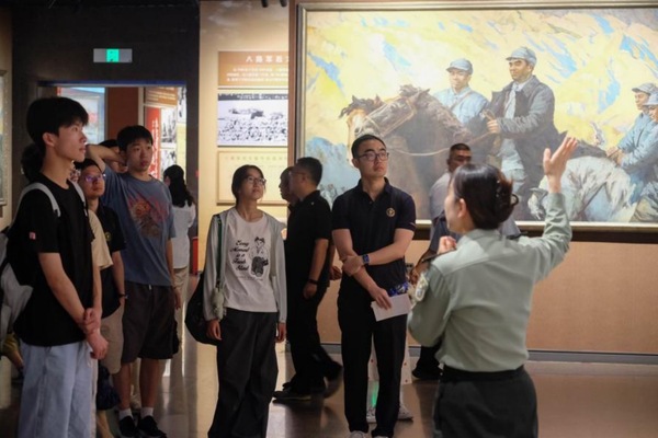 7月20日上午,队伍来到武乡县八路军太行纪念馆,它像一座矗立的丰碑,静静诉说着军民共赴国难的壮阔史诗。里面的文物承载着沉重的历史记忆,我们聆听文物背后的故事,看着玻璃橱窗内的文物,也仿佛目睹了艰苦的抗战岁月景象。