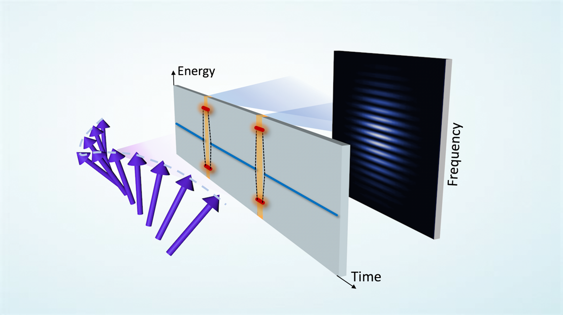 图1:示意图。本工作利用时间狭缝实现对磁子强耦合态的相干调控,形成时间双缝衍射现象。