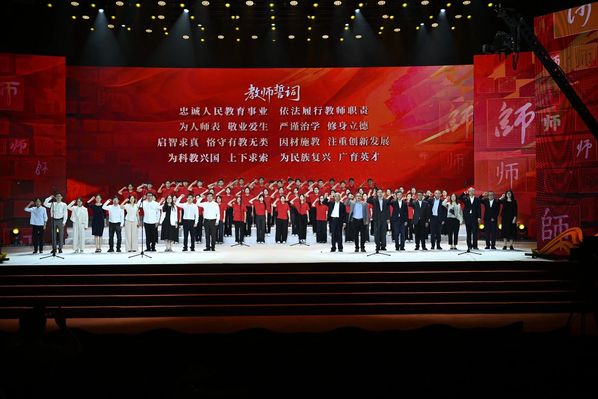 9月10日晚,“奋进教育路 唱响强国志——2025年上海市庆祝第41个教师节主题活动”在上音歌剧院举行。本次活动由市教卫工作党委、市教委主办,通过多种艺术形式,深情讴歌了上海教师队伍践行教育家精神、担当育人使命的感人故事,立体呈现了上海教育系统以习近平新时代中国特色社会主义思想为指导,深入贯彻落实全国教育大会和上海市教育大会精神,推动教育高质量发展、服务国家战略的生动实践和改革成效。