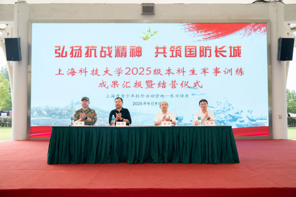 吴强指出,通过两周军事训练,同学们实现了“从青涩到自信的成长蜕变”。结合纪念抗战胜利80周年阅兵的场景和学校的育人理念,吴强强调,新时代大学生应当"将个人理想融入国家发展大局",同时嘱托同学们要重视身心健康,以强健体魄投入新时代建设。他表示,无论是军训场上的烈日考验,还是未来科研道路上的困境突破,都需要同学们培养独立人格、锻造自律品格、磨砺执着精神。他指出,这种精神品质是走好创新长征路的必备素养。最后,吴强以九三阅兵彰显的科技实力为切入点,强调家国情怀的重要意义,期望上科大学子以“立志 成才 报国 裕民”为指引,勇担时代赋予的重任。