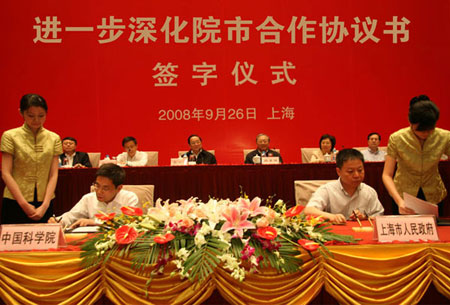■2008年9月26日,中国科学院与上海市人民政府签订《进一步深化院市合作协议书》,决定合作建设中科院上海浦东科技园暨中科院上海高等研究院,充分利用双方的资源和优势,共同建设一所高水平的研究型大学。