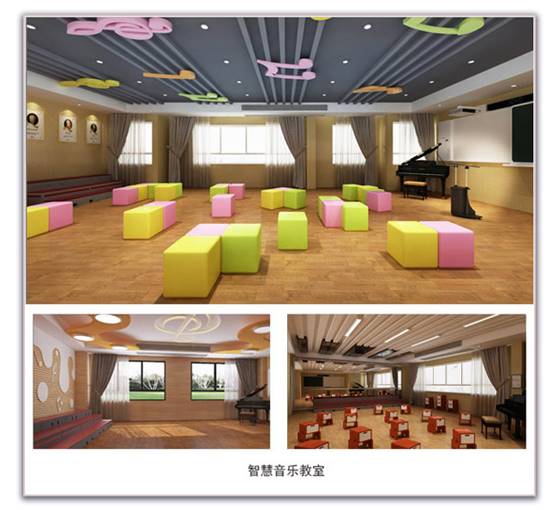“智慧音乐教室”融合了前瞻的音乐教育理念和现代顶尖的科学技术,引进先进的教学设备,构建了可根据教学需求随意变换成合唱、声乐、器乐、舞蹈形体、话剧小品等灵活多样的活动场所。梦幻般的智慧音乐教室,期待着天籁的童声、浪漫的舞姿、独特的伴奏、精彩的戏剧,共同打造全新的梦幻的艺术世界!