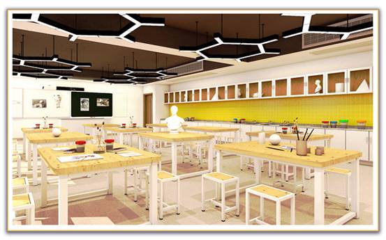 “美术创新教室”为学生提供了大胆创作、多元欣赏、个性展示的良好环境。满足学生观察体验、实践探究、合作交流等多样化学习需求,激发学生想象力,培养学生创新思维。
