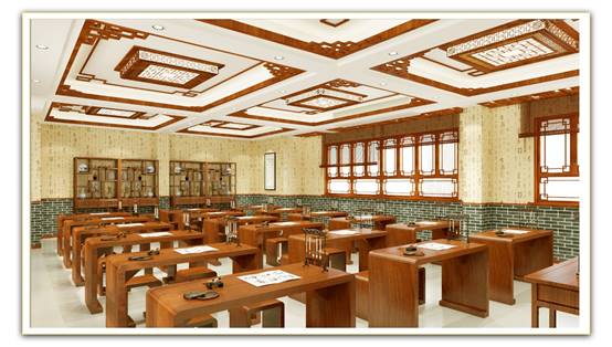 在古色古香的“书法苑”、“国学堂”、“茶艺馆”中,莘莘学子可以尽情享受:挥毫弄笔临摹真草隶篆,开卷翻书诵读四书五经;烹茶换盏品尝红绿白黑,习礼抚琴传承国粹精华。