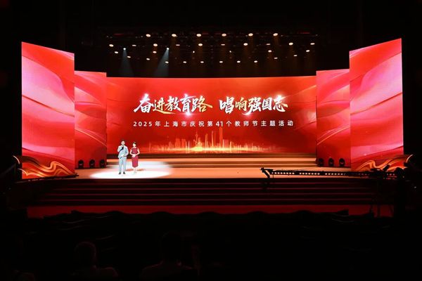 9月10日晚,“奋进教育路 唱响强国志——2025年上海市庆祝第41个教师节主题活动”在上音歌剧院举行。本次活动由市教卫工作党委、市教委主办,通过多种艺术形式,深情讴歌了上海教师队伍践行教育家精神、担当育人使命的感人故事,立体呈现了上海教育系统以习近平新时代中国特色社会主义思想为指导,深入贯彻落实全国教育大会和上海市教育大会精神,推动教育高质量发展、服务国家战略的生动实践和改革成效。
