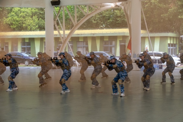 捕俘刀方队持刀稳健、劈砍有力、势不可挡,展现出坚韧不拔的斗志与铁一般的纪律性;海军旗语方队动作干净利落,手旗挥舞间信号传递精准流畅,气势恢宏的旗语操用无声的“语言”传递昂扬的战斗精神;硝烟场上,特种战术方队行动敏捷,动作精准,灵活的战术协同引得现场阵阵欢呼,展现出过硬的特种作战素养。