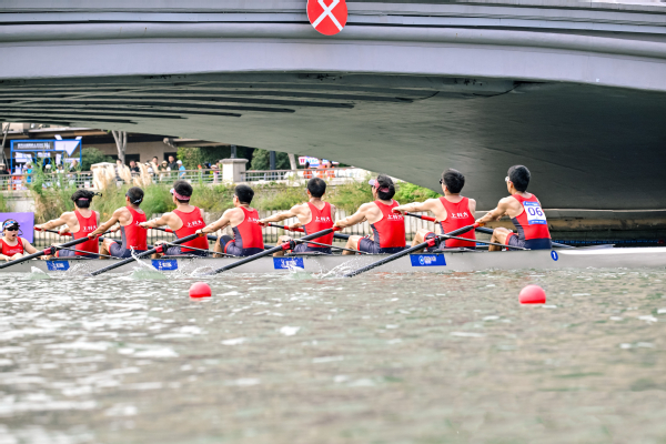 上科大赛艇队不仅是一支追求速度与荣誉的队伍,更是一个充满温度与凝聚力的 “大家庭”。即使是未能登场的替补队员马跃、岳谢墨瀚、罗千程、赖梓弋,也始终以饱满的热情参与其中:当两条八人单桨艇下水比赛时,他们穿梭在河岸两侧,寻找最佳拍摄角度记录队友的比赛瞬间,同时高声呐喊为队友加油助威;比赛结束后,他们第一时间迎上前去,为队员递上补给品,送上温暖的鼓励。教练团队也始终用专业与温情陪伴队员成长:于辉教练时常暖心叮嘱队员,“在赛场上,不求多得,只求少丢”,教导大家以沉稳心态应对比赛;“对队友,要多点鼓励,少点指责”,引导队员营造和谐互助的团队氛围。李响教练则语重心长地表示:“赛艇队是代代传承的集体,一年又一年,有人毕业离开,也有新鲜血液加入。但希望每一位队员都能珍惜‘同在一条船’的缘分,这份难得的情谊,才是我们最珍贵的收获。”