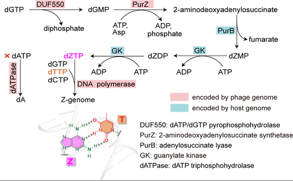 Figure 2. The characterized biosesynthetic pathway of Z-genome in phage.